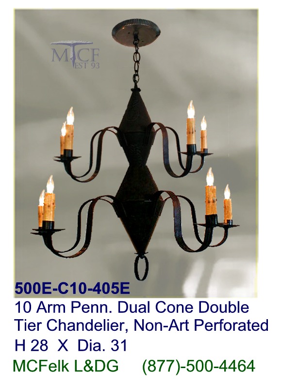 10 Arm Pennsylvania German Dual Tier Chandelier, custom perforated art included.