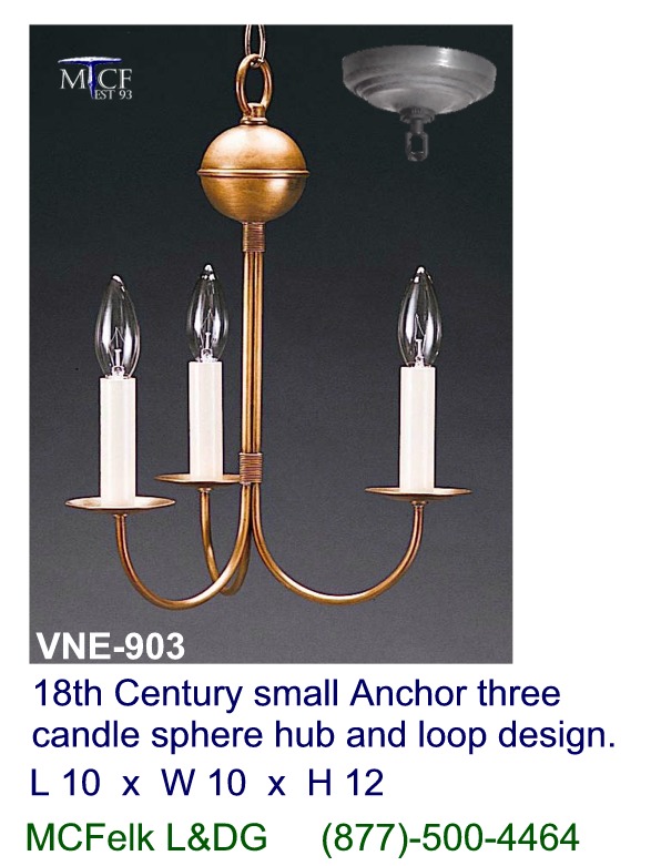 18th Century small Anchor three candle flush mounted sphere hub and loop design. Great for low ceiling applications
