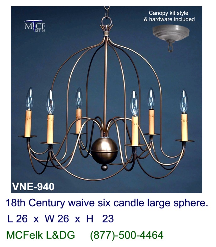 18th Century dual tier Large Anchor twelve candle sphere hub and loop design. (Truck shipping required.)