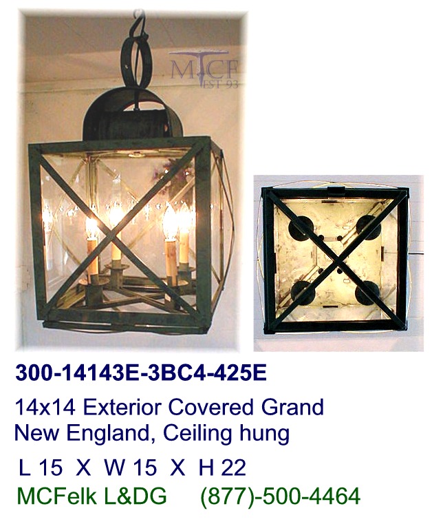 14x14 Exterior Covered Grand New England quad candle, Ceiling hung, Banded glass