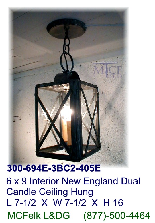 6 x 9 Interior New England Dual Candle Ceiling Hung, Banded glass