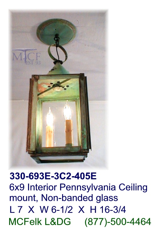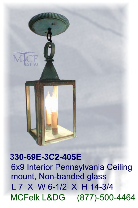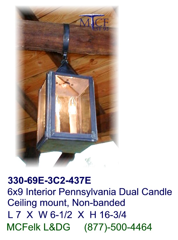 6x9 Interior Pennsylvania Ceiling mount dual candle, Non-banded glass