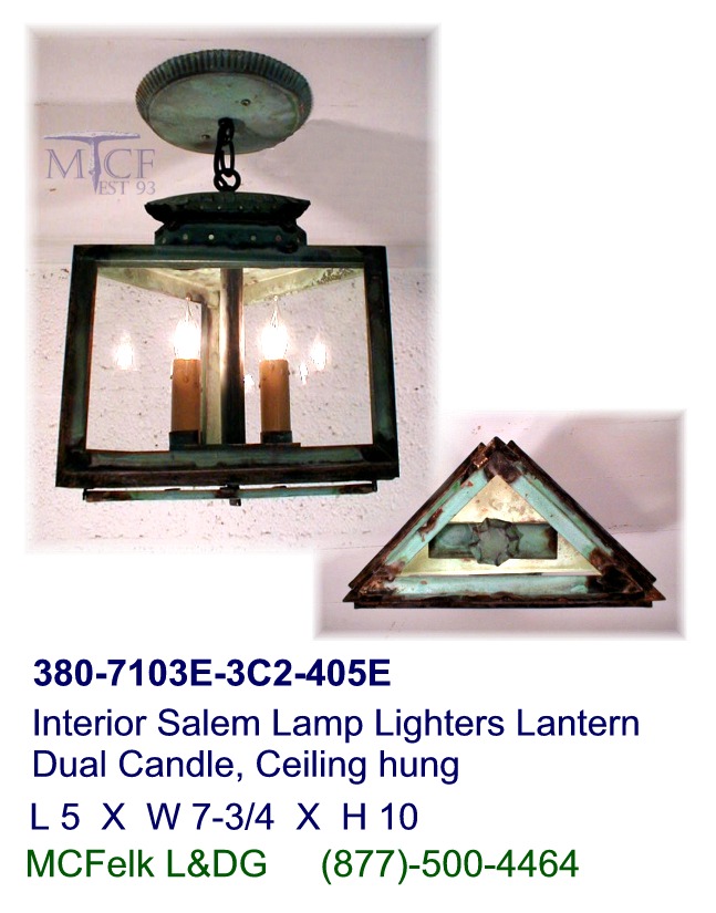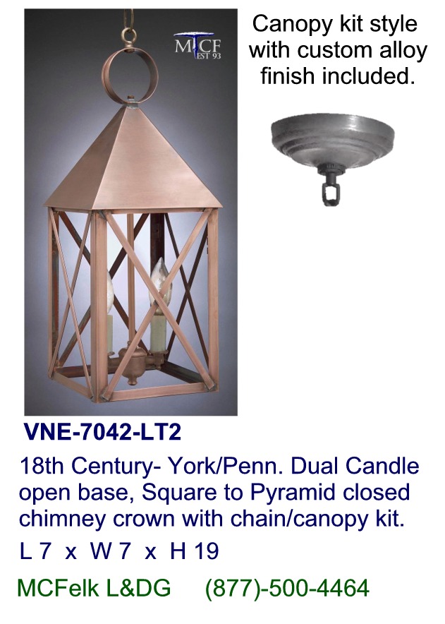 18th Century- York/Penn. Dual Candle open base, Square to Pyramid closed chimney crown with chain/canopy kit.