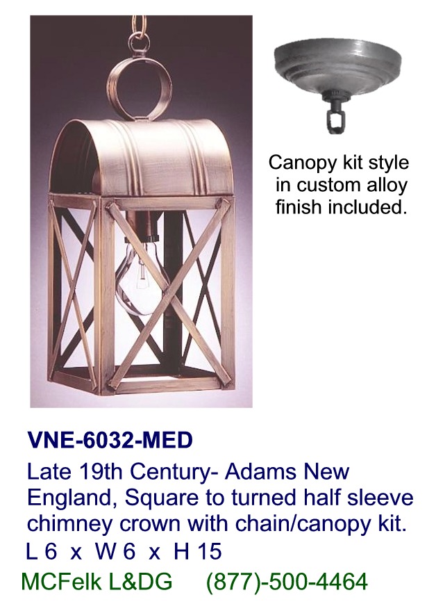 Late 19th Century- Adams New England, Square to turned half sleeve chimney crown with chain/canopy kit.