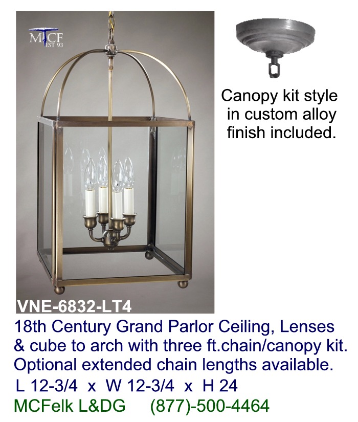 18th Century Grand Parlor Ceiling, Lenses & cube to arch with three ft.chain/canopy kit. Optional extended chain lengths available.