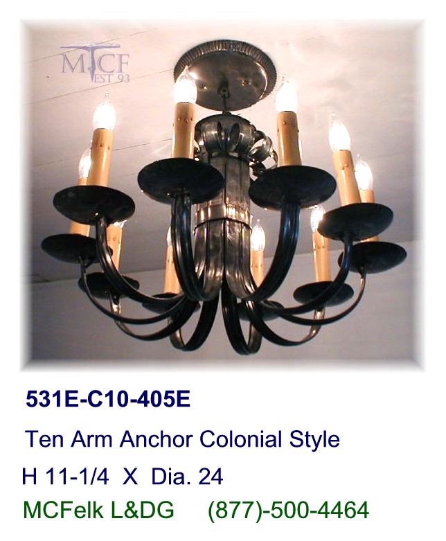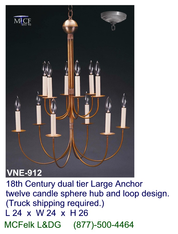 18th Century dual tier Large Anchor twelve candle sphere hub and loop design. (Truck shipping required.)