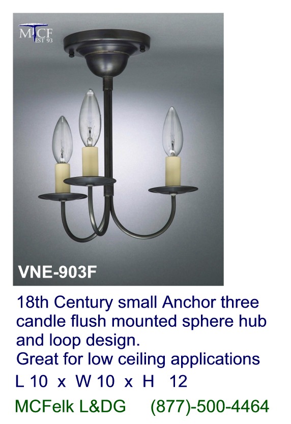 18th Century small Anchor three candle flush mounted sphere hub and loop design. Great for low ceiling applications