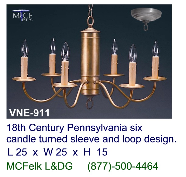 18th Century Pennsylvania six candle turned sleeve and loop design.