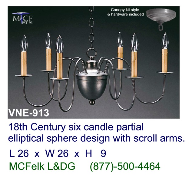 18th Century six candle partial elliptical sphere design with scroll arms.