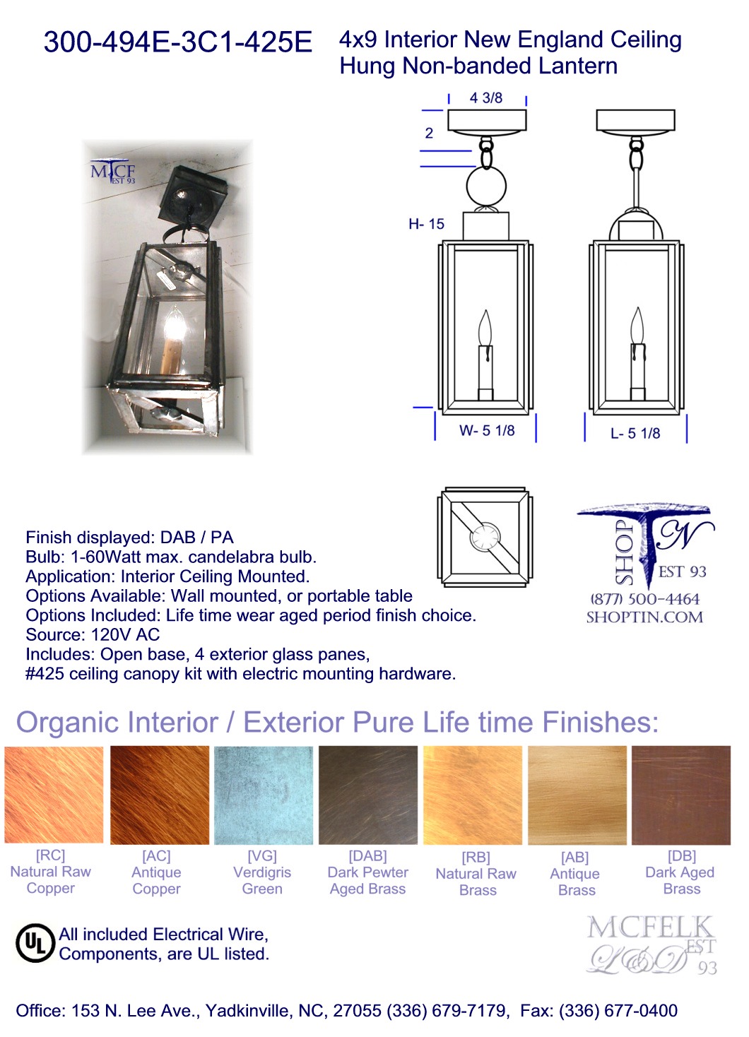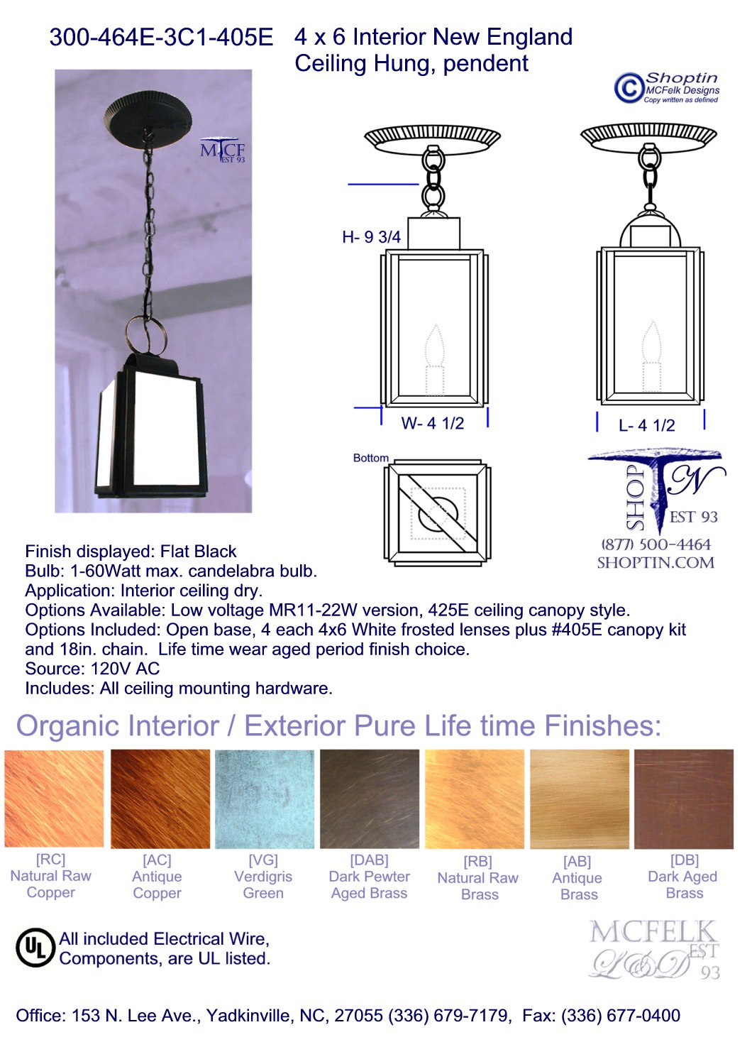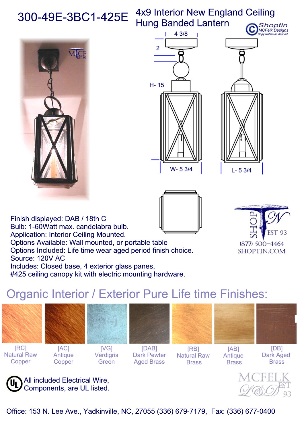 6dia. x 9 Interior Lancaster Lamp Lighters Ceiling hung