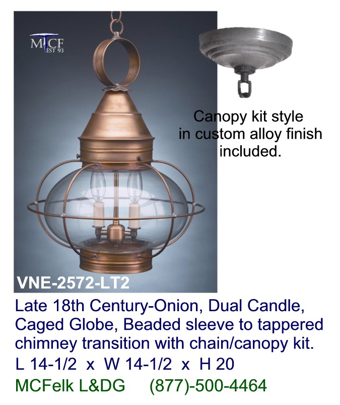 Late 18th Century-Onion, Dual Candle, Caged Globe, Beaded sleeve to tappered chimney transition with chain/canopy kit.